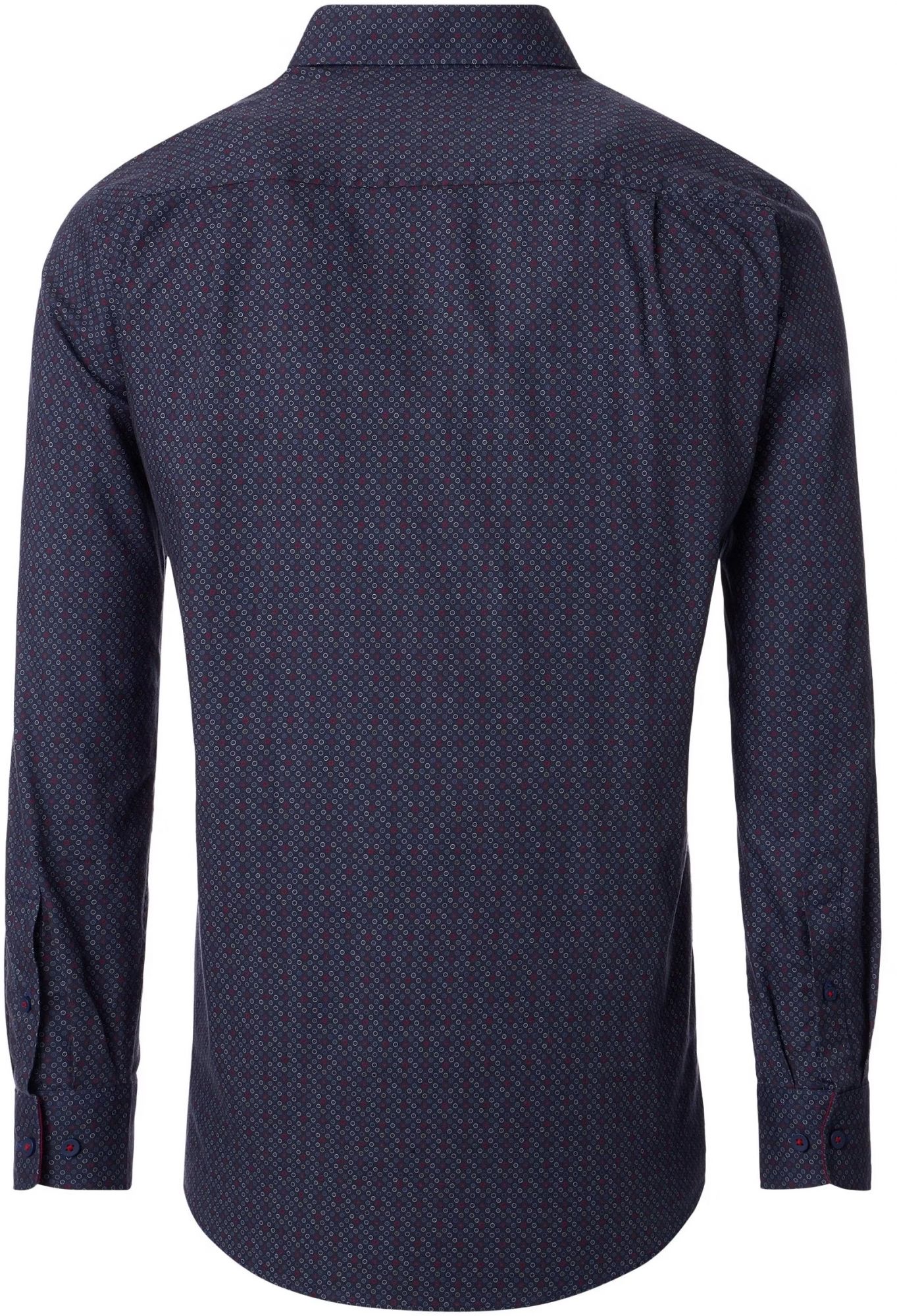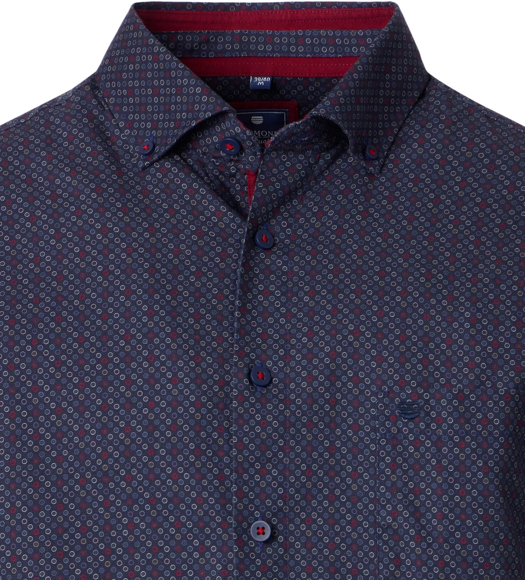 Coloris bleu marine avec petits imprimés rouge & gris.