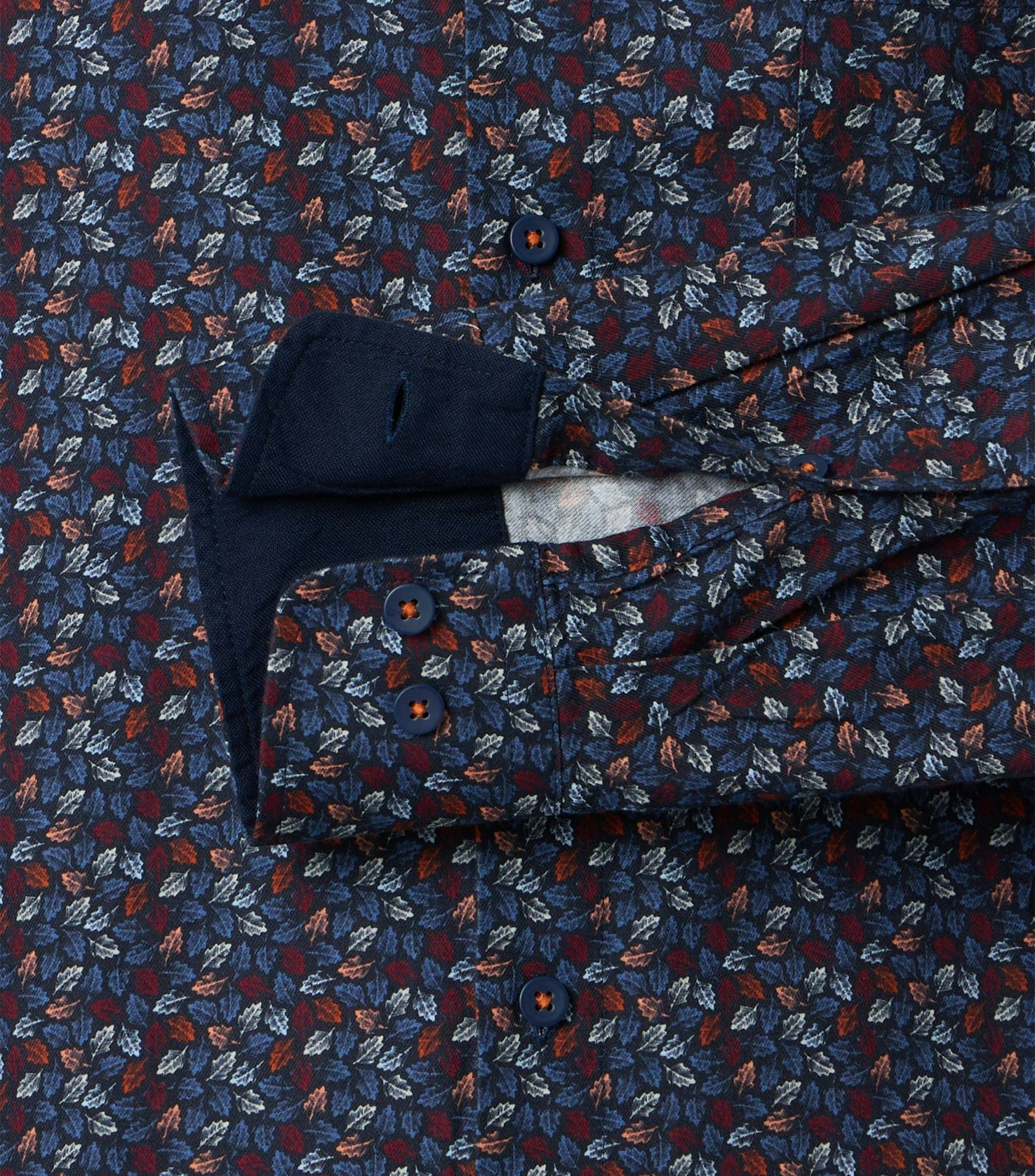 Coloris bleu marine avec imprimé.