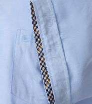 Intérieur de col et revers de manche en tissu contrastant.
