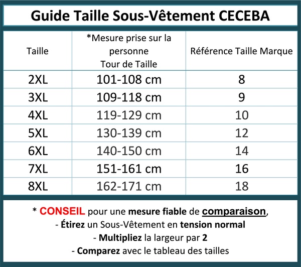 Toutes les marques ne taillant pas pareil, nous vous invitons à consulter le tableau des tailles ci-contre correspondant à l’article