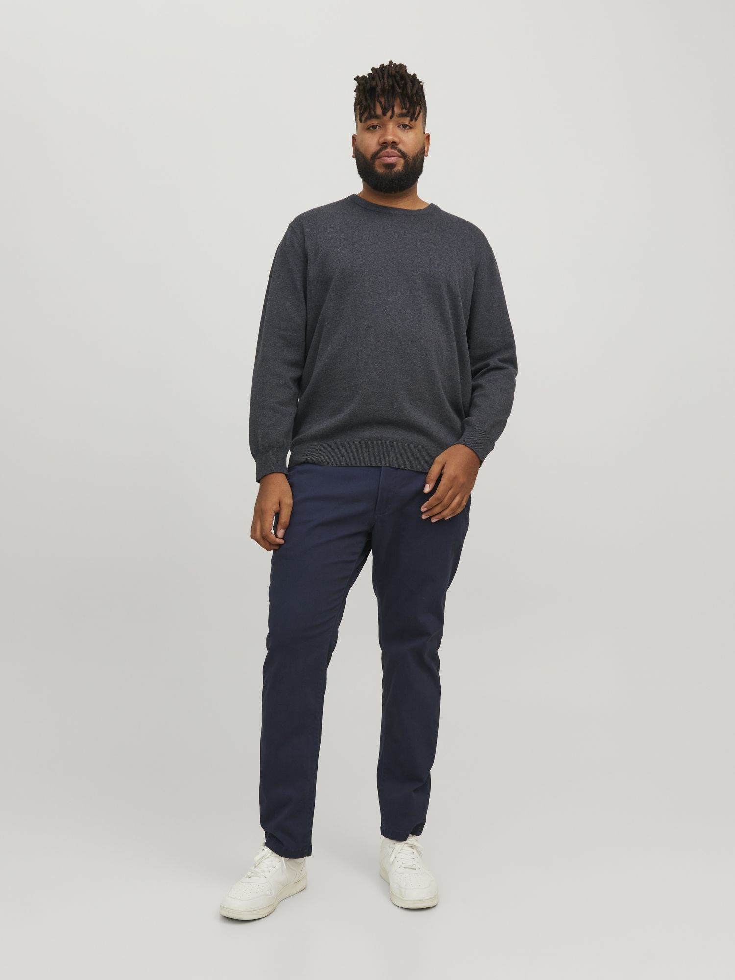 Pull Col Rond Anthracite Jack&Jones du 3XL au 8XL